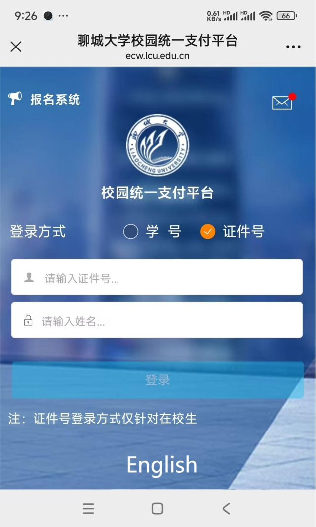 聊城大公司园统一支付平台 微信扫码后登录界面