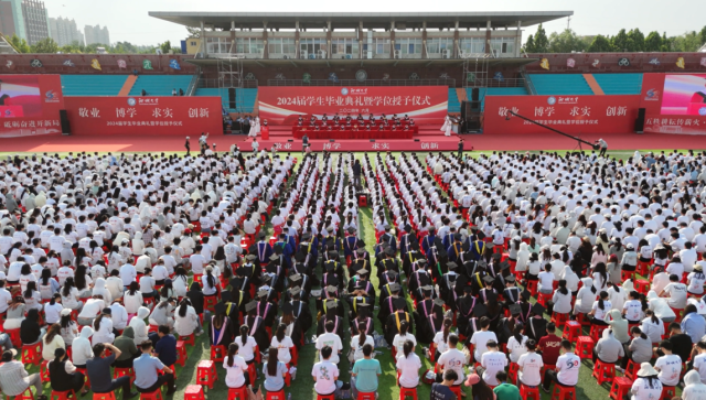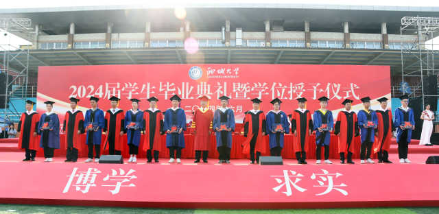 党委副书记胡海泉宣读了2024届研究生硕士学位授予决定、2024届本科毕业生学士学位授予决定、2024届高等学历继续教育本科毕业生学士学位授予决定和2024届本科生荣誉学位授予决定。党委副书记房增福宣读了优秀毕业生表彰决定与2024年西部计划优秀志愿者表彰名单。8787名毕业生中,208名同学为省级师范类优秀毕业生,318名同学获评省级非师范类优秀毕业生,944名同学获评校级优秀毕业生;236名优秀毕业生入选2024年老员工志愿服务西部计划全国项目,24名优秀毕业推免生和在读研究生入选第二十六届研究生支教团,260名同学获“蓝鲸体育优秀青年志愿者”荣誉称号。