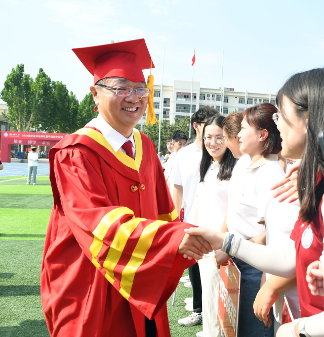 在校歌《飞向美好的明天》优美的旋律中,典礼缓缓落下帷幕。校领导们走到毕业生中,与即将踏上新征程的学子深情道别。毕业生簇拥在师长周围,争相握手、合影,道不尽对母校的眷恋、诉不完对老师的感恩,现场气氛温馨感人。