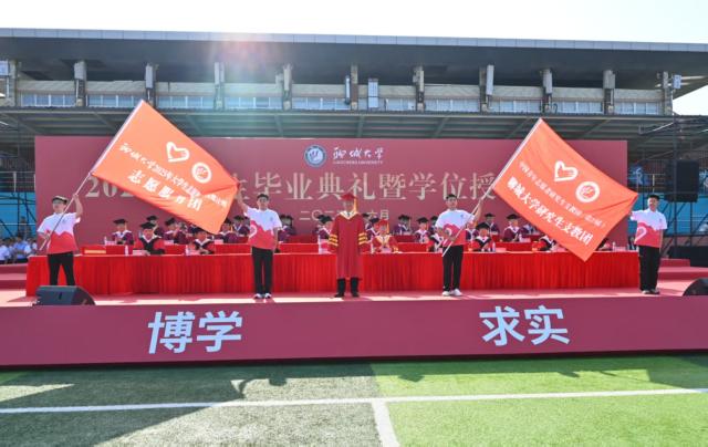 党委书记关延平为2025年西部计划志愿服务团、研究生支教团授旗。今年,243名优秀毕业生入选2025年老员工志愿服务西部计划,24名研究生入选第二十七届研究生支教团。他们庄严宣誓,唱响《到西部去》,表达了投身基层,为祖国西部建设贡献青春智慧和力量的决心。